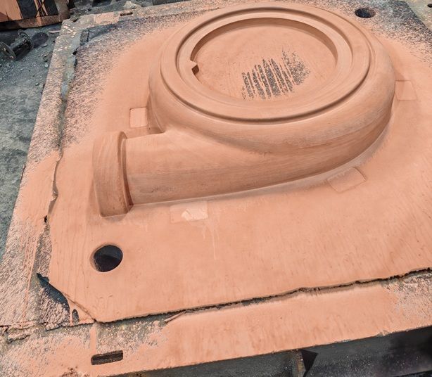 树脂砂铸造技术使用石英砂、化学树脂(通常为3-5%)和硬化剂的混合物,制成刚性强、强度高的模具,该模具可在室温下(无需烘烤)或通过加热进行硬化。模具制成后,将熔融钢或铸铁浇注到模具中。树脂砂的耐火性能有助于保持模具的稳定性。然后,通过抖掉砂子去除,并将毛坯铸件进行切割、喷砂、精密加工和组装,最终生产出泵壳、泵体、泵盖等成品。